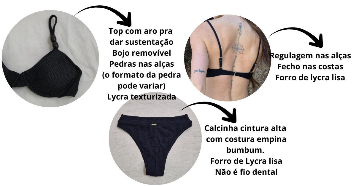 - Tecido: Lycra texturizada com alto padrão de qualidade e duabilidade, proteção UV 50+ , 87% poliamida e 13% elastano.