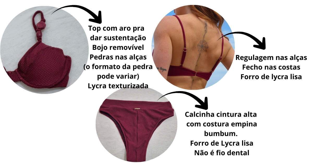 Biquíni Hot Pants Vinho é excelente modelo para quem busca um biquíni que dá sustentação, estiloso e elegante.